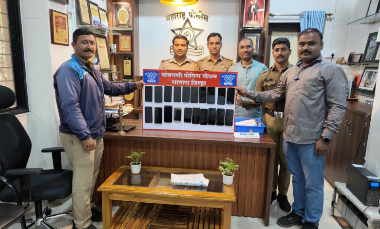 पांचगणी पोलीस हद्दीतील गहाळ झालेले ४ लाखांचे २५ मोबाईल पोलिसांनी केले नागरिकांना परत